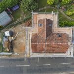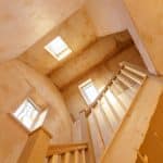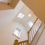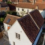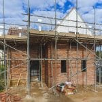 At the point we arrived on site, the foundations, external walls, timber first floor structure, and timber roof structure of the extension had been constructed. After some snagging associated to the elements undertaken by the previous contractor, we were then ready to push on with the remaining scope of works. A high level lift of scaffolding was put in place so we had safe access to the roof, which was closed in using a waterproof membrane and roof tiles that match the existing house. This scaffolding was then altered as we moved down the building, painting the external walls in white to again match the original house. At the same time, we replaced all of the windows and external doors to the property, including a beautiful stained-glass window situated on the staircase.