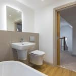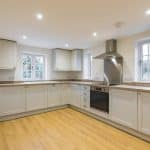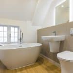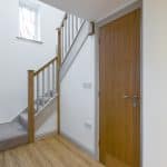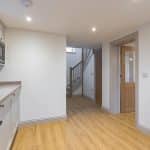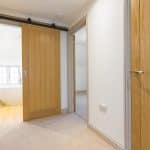 Once the property was closed in and watertight, the scaffolding was struck so we could complete the external fencing and driveway, as well as turning our attention to the internal fit out. The works inside the house are very much what you’d expect to find under modern day building standards. Plasterboard and skim have been used to line and flatten the walls, covered by a variety of finishes including paint and tiles. The internal doors are all pre-finished oak veneer in the very popular ‘cottage’ style, with a feature sliding door on a cast iron track being utilised for the first floor Family Bathroom. The staircase is a softwood construction finished with oak newels, painted spindles, and a full carpet covering. In the Kitchen, shaker style units have been fitted, again a very popular choice amongst customers, topped with an oak-effect laminate worktop and stainless steel accents on the appliances and splashback, giving the Kitchen a slightly more industrial feel as well as being extremely hard wearing. Overall, the location and specification of this property make it the ideal summer hoiliday rental or full time family home.