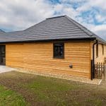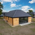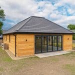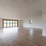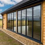 The structure of the extension is quite straight forward. Strip foundations were dug & poured in concrete before an insulated floor slab was installed. Two-skin masonry carries the building up to the damp proof course level before a structural timber frame forms the external walls and roof. The walls are clad in timber larch and the roof is covered with slate roof tiles, both specified to match the existing building. Likewise, the windows are anthracite grey uPVC and the full height screens and bi-folding doors are anthracite grey aluminium. These provide a great influx of natural light into the space, especially in the warmer months of the year. Around these fixtures are feature oak posts and beams, which provide structural support as well as adding a premium feature to the building.