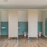 Internally, the walls and ceilings have been lined with plasterboard, plaster skim, and bright white paint, which reflects the natural light that comes in via the aluminium screens and doors. The toilet cubicles have been specialist designed for use by 3-5-year-old children, with the sanitaryware set at a lower height than the equivalent for adults. The cubicle doors are also shorter, which enables supervisors to assist any children that may need it, whilst also providing adequate privacy for those children while they use the facilities. In terms of the other features within the new extension, we’ve installed a small washing up station for clean up after painting and other activities, and formed a Staff Room behind the toilet cubicles for supervisors to use while they are on break.