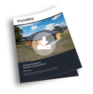 The original building, designed and built by Trundley Group, was used as a spa, providing massage therapy and a variety of other services for customers. In 2024, the client and owner of the building reached out to our design team wishing to change its use to suit an incoming tenant who runs a day nursery business. Initially we undertook some small alteration works to make the existing spaces suitable for their new use, but this wasn’t enough to provide the level of service their tenant was looking to deliver. As such, plans were developed for a new extension to the building, which would house a play area for 3-5-year-old children. Our design team worked with the client through the concept development, planning permission, and building regulations approval to ensure we had full authority to construct the extension.
