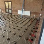 The challenge with this phase was the required specification for the flooring, arising from it needing to be suitable to have dance lessons on. In short, a dance floor needs to have an element of ‘spring’ to it, as to assist students with jumps and lifts while they practice and perform. To create this spring you need a specially designed floor build up. After removing the existing floor and giving the area a good clean we laid a damp proof membrane which will protect the new floor from any rising damp or moisture. Over the membrane, adjustable levelling cradles were set out at regular intervals and checked with a laser to ensure they all had the same finishing height, this would reassure us that our new floor was going to be perfectly level. On top of the cradles are timber battens with a layer of foam on the backing, and it is this foam that contracts and expands under impact, giving the floor its sprung nature. Finally, the premium hardwood floor covering was fixed over the battens before plastic skirting was installed to the perimeter of the Hall.