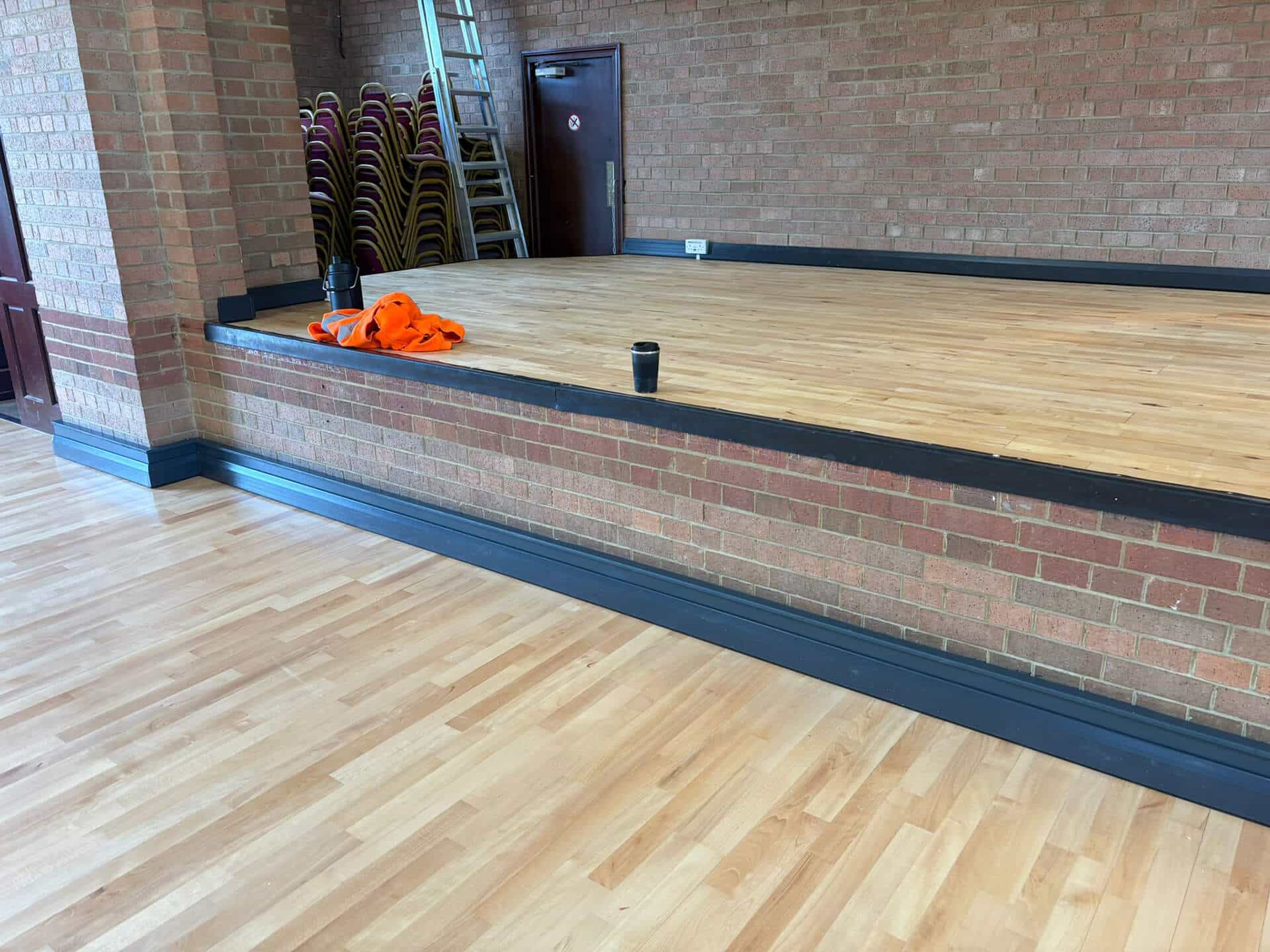 As well as replacing the main floor area, we reclaimed some of the original floor boards and reinstalled them on the stage, which previously only had a plywood covering.